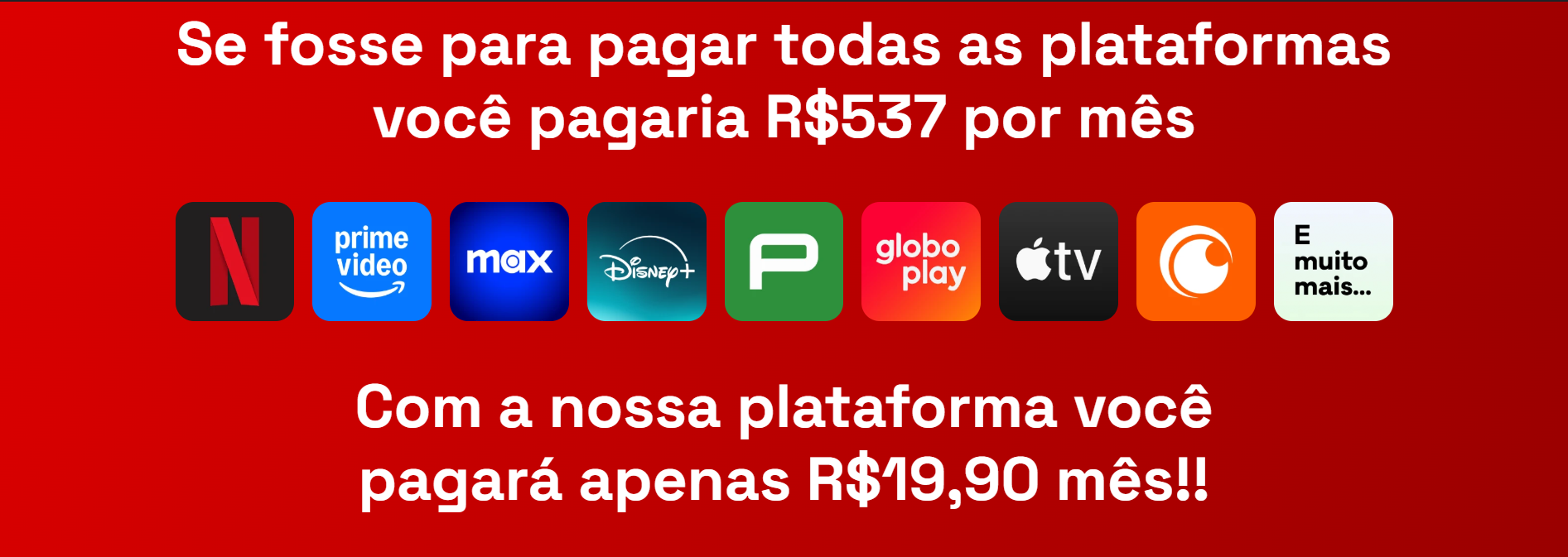Tenha acesso ao conteúdo de todos os streamings! Canais ao Vivo, Filmes e séries, Esportes, Novelas, Notícias, Documentários e muito mais, por um valor que cabe no seu bolso.